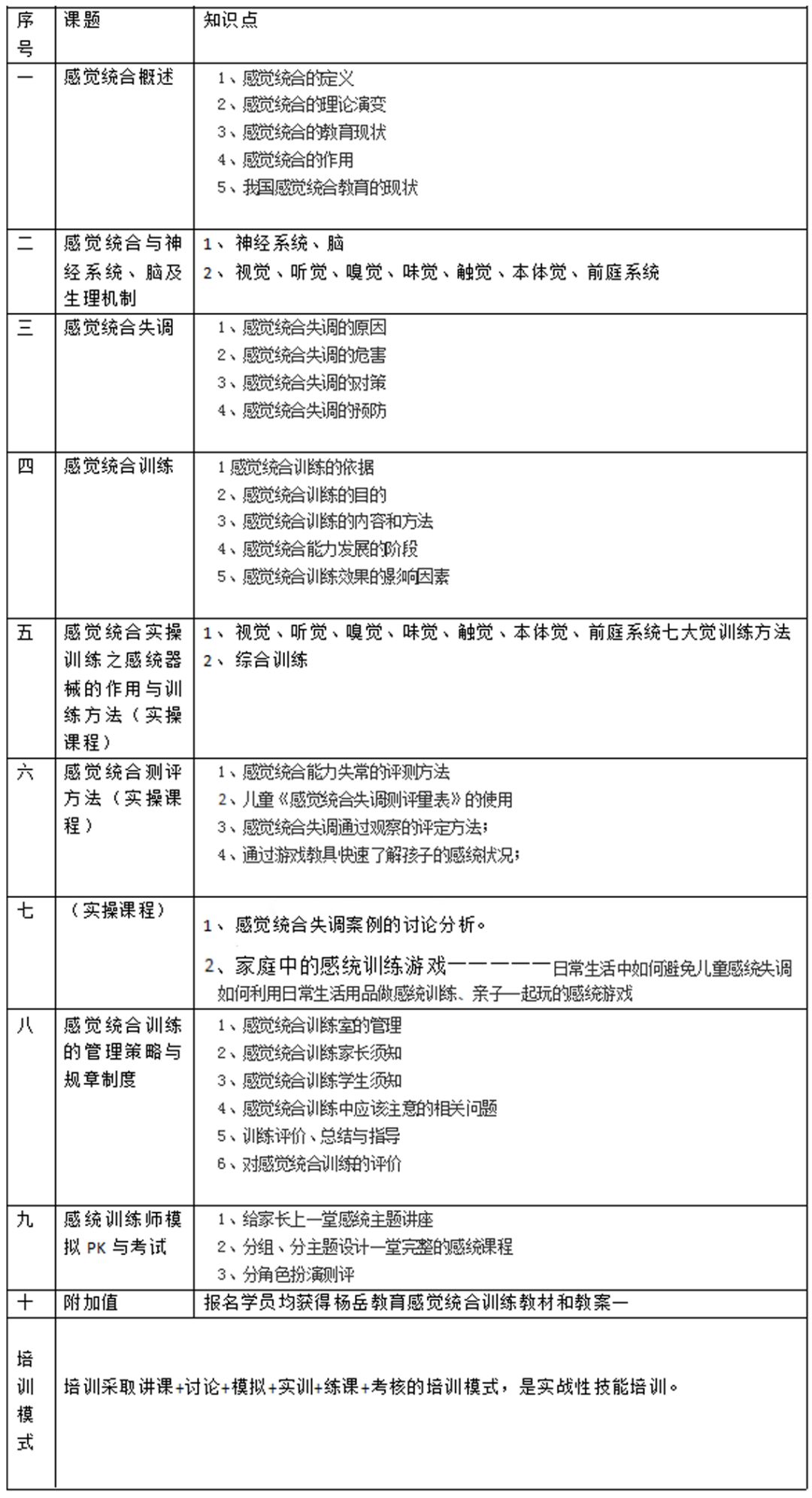 不同于目前社会上大多数感统加盟、感统训练师培训,杨岳教育集团汇聚优质教育资源及多位专家老师多年一线操作经验等精心打造"感觉统合训练师认证研修班",进行专业技能的培训,提升学员的岗位操作能力和进行专业的认证。