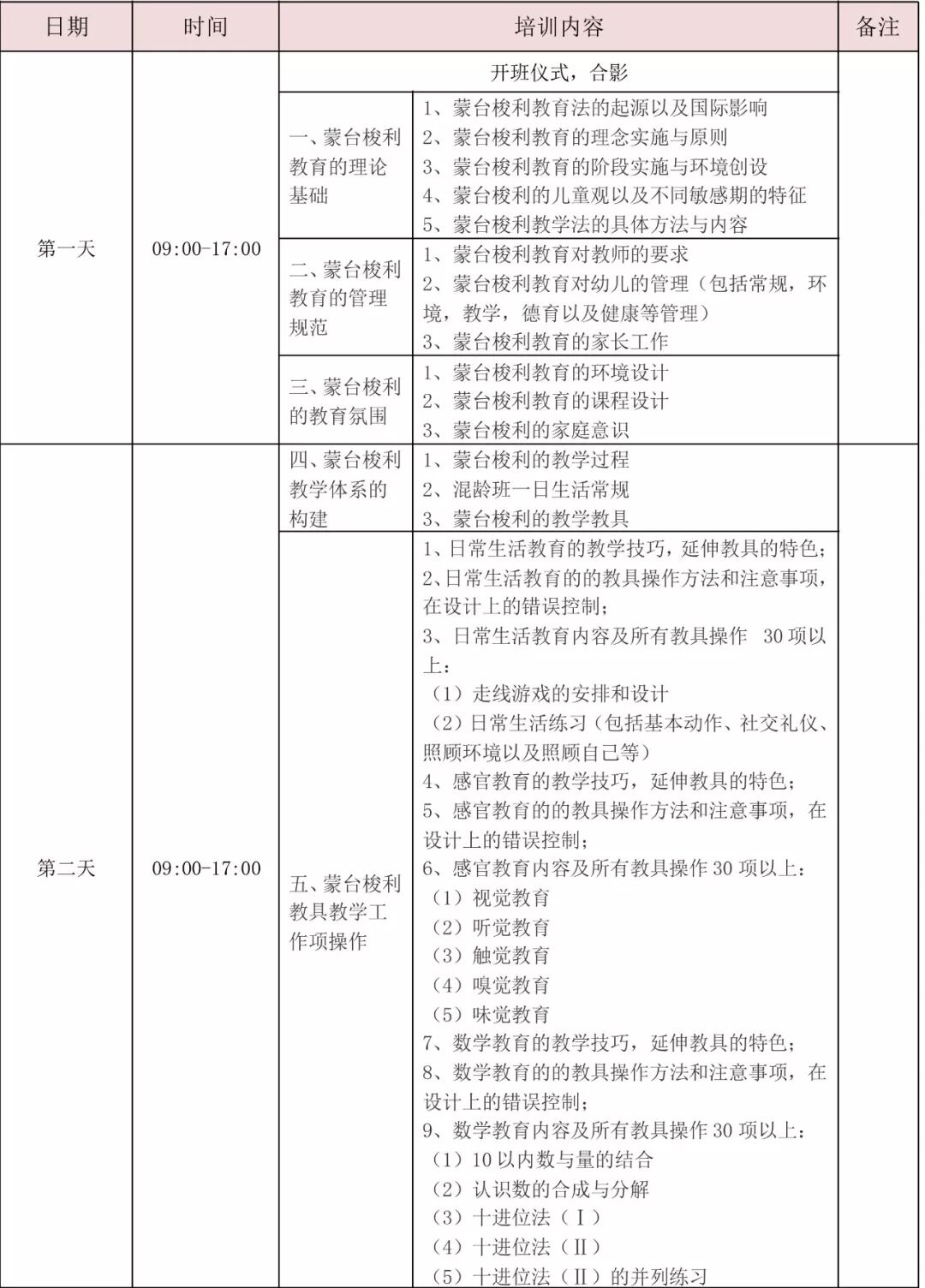 培训费用:1680元(包括培训费用、全国专业人才储备委员会颁发的高级蒙氏教育指导师证、学习资料)