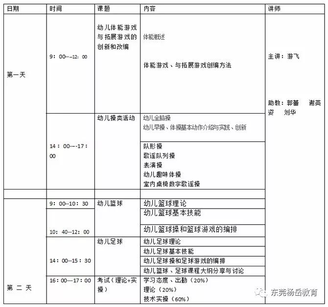 本课程是杨岳教育针对幼儿园、早教师资培训的课程,根据多年的教育顾问、课程研发与师资培训经验,结合幼儿体能、幼儿体操、幼儿蓝球、幼儿足球等最新训练方式,意在打造幼儿园运动体能课程特色、提升园本教师技能,解决幼儿园缺乏体能教师的现象,并帮助形成一套完整的幼儿体能训练课程。